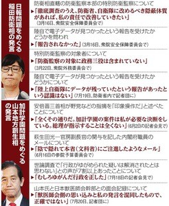 稲田防衛相については、陸上自衛隊の「都合の悪い日報」を隠蔽しようとしたようです。