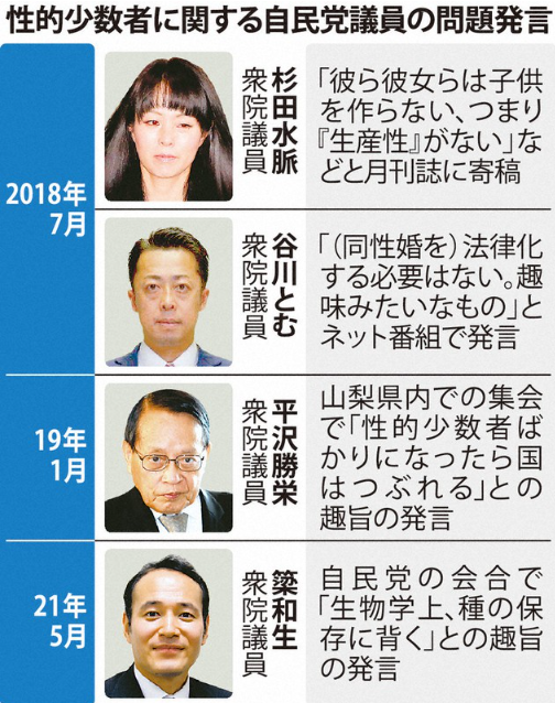 LBGTQ(性的少数者)への差別発言で、首相秘書官が更迭された。